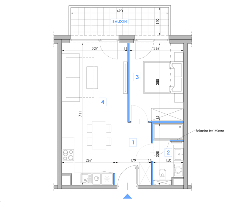 Budynek C Lokal 309 Kondygnacja: Kondygnacja III Powierzchnia całkowita: 40.76 m2 Ilość pomieszczeń: 2P+AK Status: Rezerwacja Pomieszczenia: Korytarz: 4.83m2 Salon + aneks kuchenny: 21.78m2 Sypialnia: 9.85m2 Łazienka: 4.30m2 Balkon: 6.86m2 Pobierz kartę apartamentu Poprzedni lokal Następny lokal
