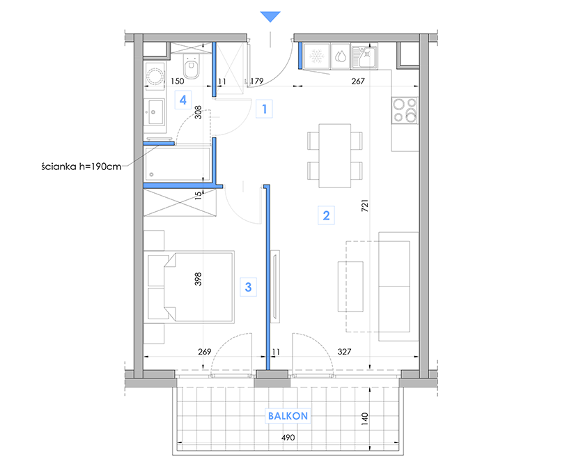 Budynek C Lokal 317 Kondygnacja: Kondygnacja III Powierzchnia całkowita: 41.93 m2 Ilość pomieszczeń: 2P+AK Status: Rezerwacja Pomieszczenia: Korytarz: 4.83m2 Salon + aneks kuchenny: 22.09m2 Sypialnia: 10.71m2 Łazienka: 4.30m2 Balkon: 6.86m2 Pobierz kartę apartamentu Poprzedni lokal Następny lokal